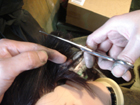 最後に刃を付けてウィッグで切れ味をチェックします。
